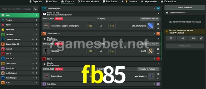 O fb85 oferece uma grande seleção de opções de apostas em e-sports com probabilidades competitivas
